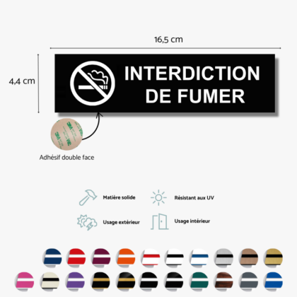 • Plaque "Interdiction de fumer" adhésive en PVC - 16,5x4,4 cm Ce produit a plusieurs variations. Les options peuvent être choisies sur la page du produit