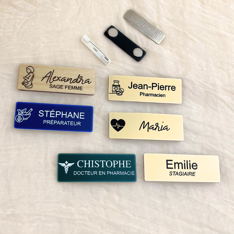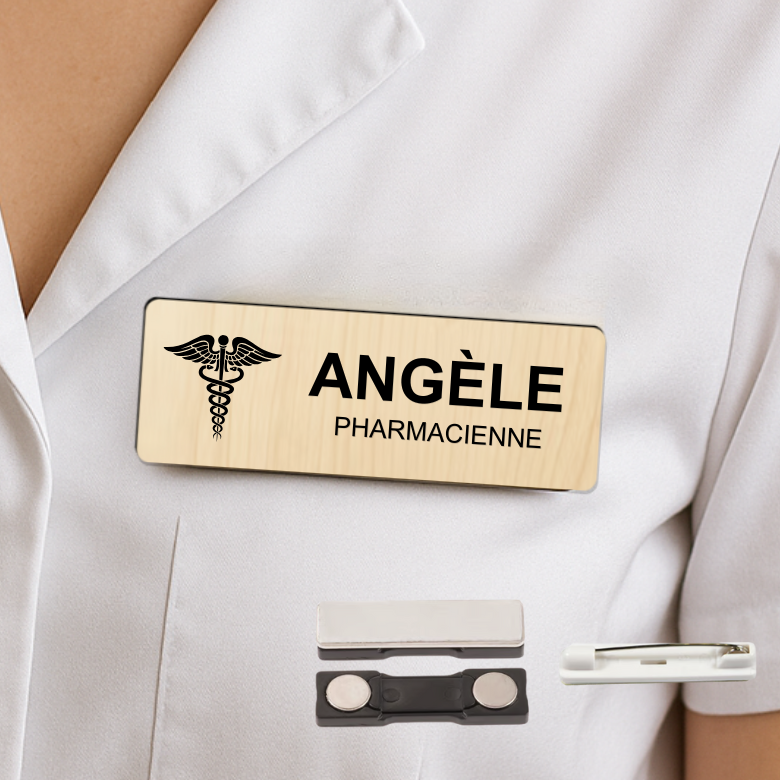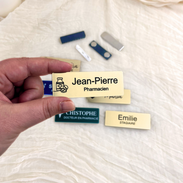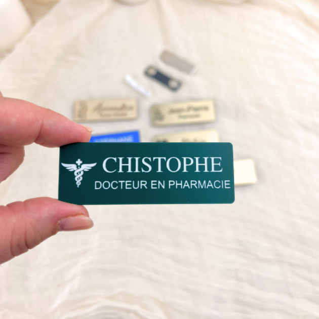 Ce badge accompagne les professionnels en officine, clinique, hôpital, opticien ou cabinet vétérinaire. Il assure une présentation soignée et facilite l’identification. Commandez dès maintenant et affichez votre nom avec professionnalisme et élégance !