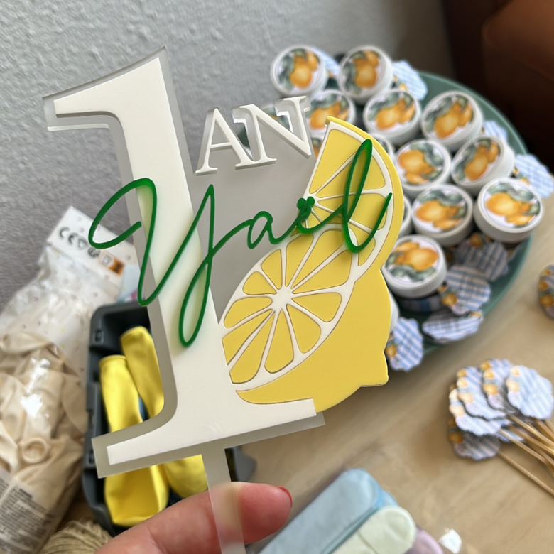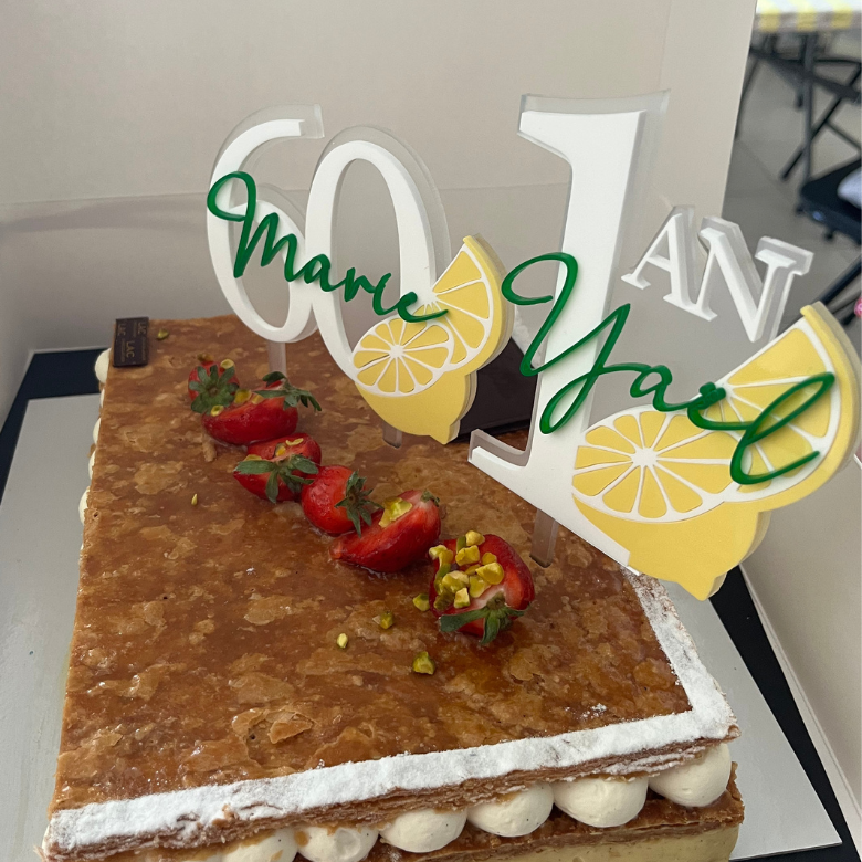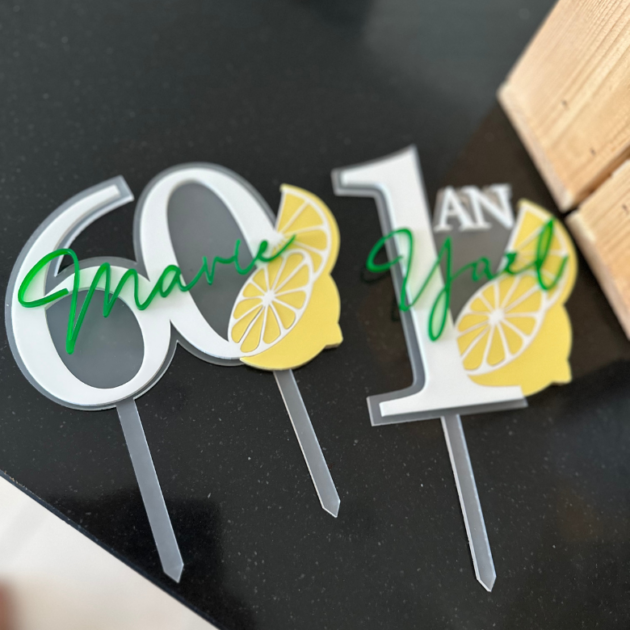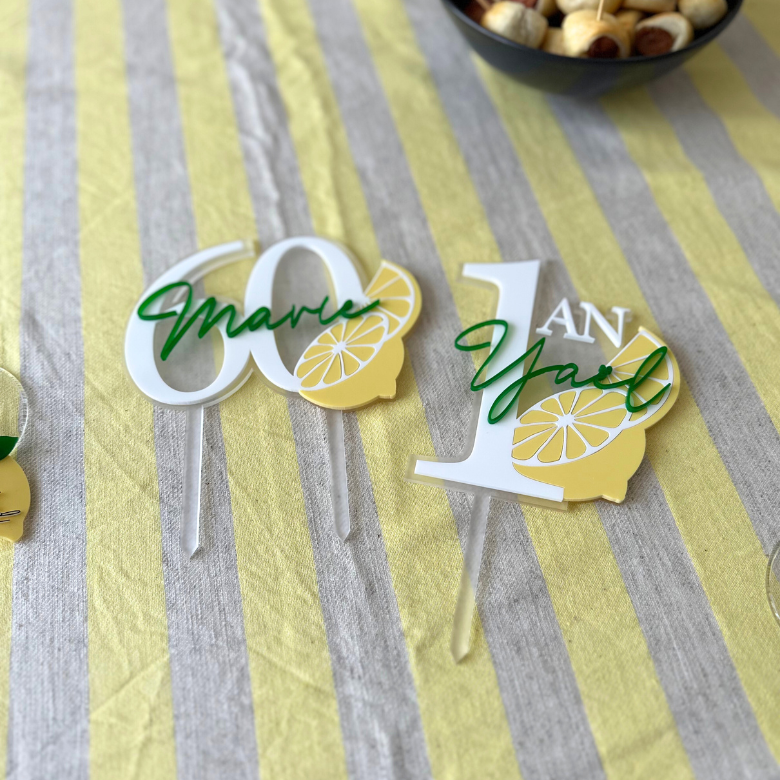 Sublimez vos gâteaux d’anniversaire avec notre cake topper citron personnalisé avec âge et prénom. Ce topper élégant et moderne est conçu pour apporter une touche de fraîcheur à vos célébrations. De plus, fabriqué en acrylique spécial contact alimentaire, il garantit non seulement une esthétique raffinée, mais aussi une sécurité optimale pour tous vos desserts.