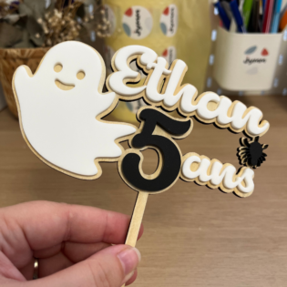 Cake topper Fantôme personnalisé pour anniversaire – Couleurs modifiables