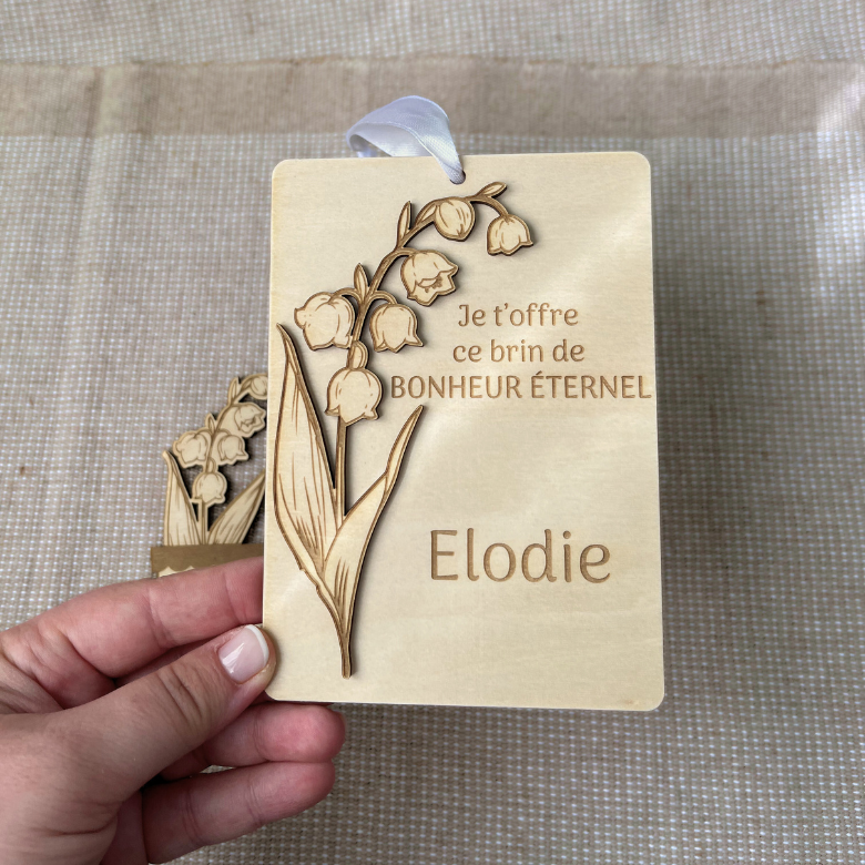 Cette carte en bois de muguet ne fane jamais. Elle devient une fleur éternelle, pleine de symboles, que l’on garde précieusement. Elle convient pour un proche, une collègue, une maman, une amie, ou toute personne à qui l’on souhaite offrir un brin de bonheur.