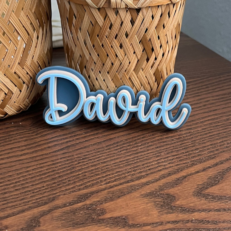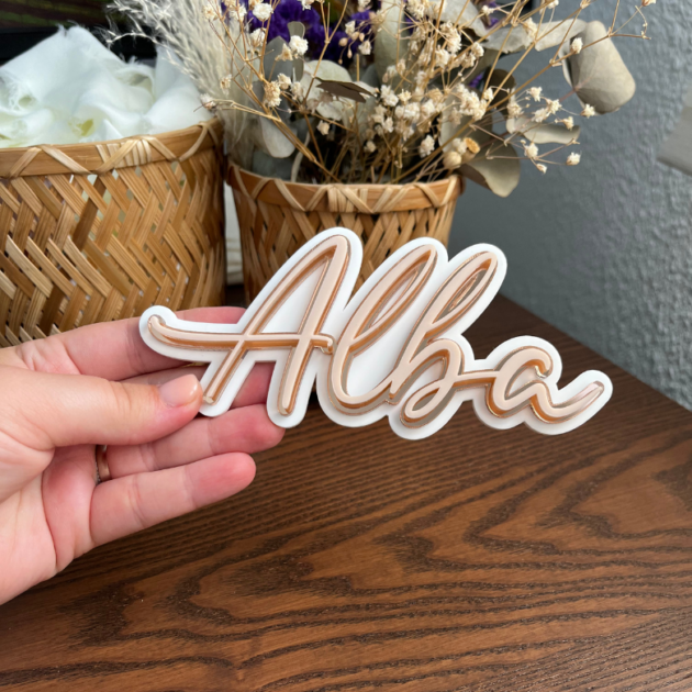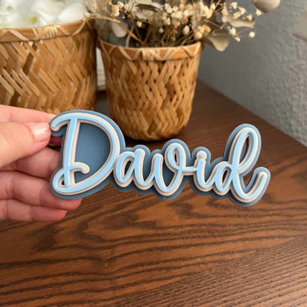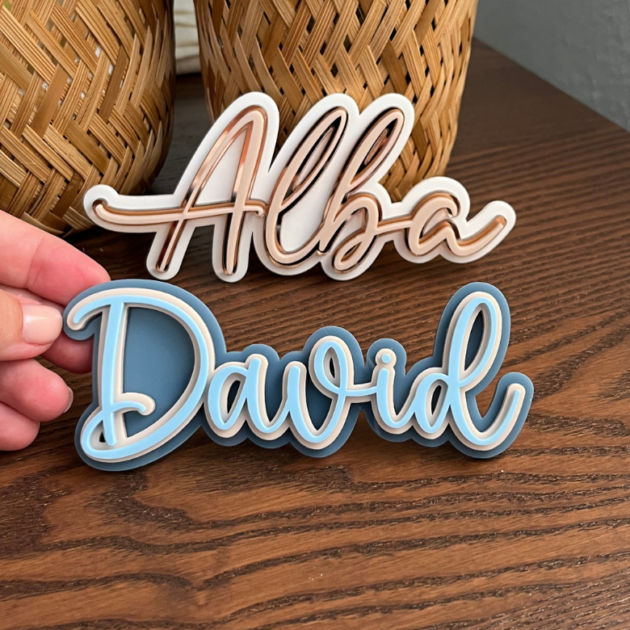 Décoration murale prénom acrylique Alba & David – effet 3D triple épaisseur :