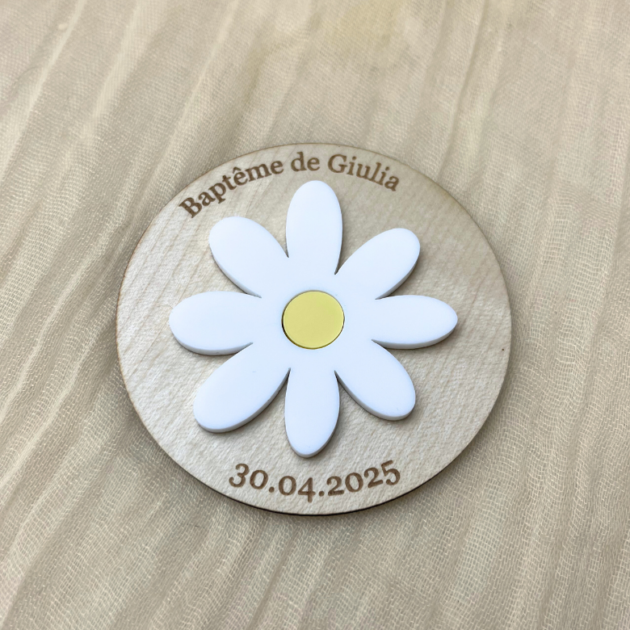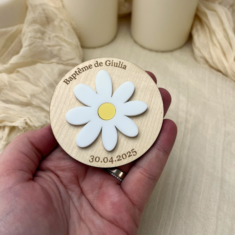 Commandez dès maintenant votre magnet marguerite et personnalisez chaque détail pour un cadeau d’invité à la fois esthétique et significatif.
