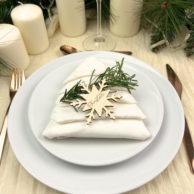 Fabriqués avec des matériaux haut de gamme, nos marque-places se déclinent en plusieurs finitions, adaptées à tous les styles de décoration. Optez pour des finitions miroir (or clair, or jaune, or rose, rouge, vert) pour un effet brillant et festif, ou pour la version en bois clair premium pour une ambiance naturelle et authentique. Leur conception soignée en acrylique de 3 mm ou en bois clair garantit à la fois robustesse et esthétisme.