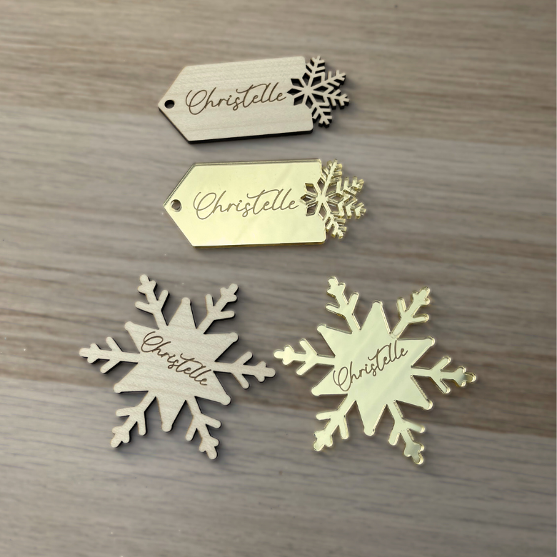 - Dimension : flocon 6×7 cm, étiquette 7,7×3,5 cm peut varier de quelques millimètres.