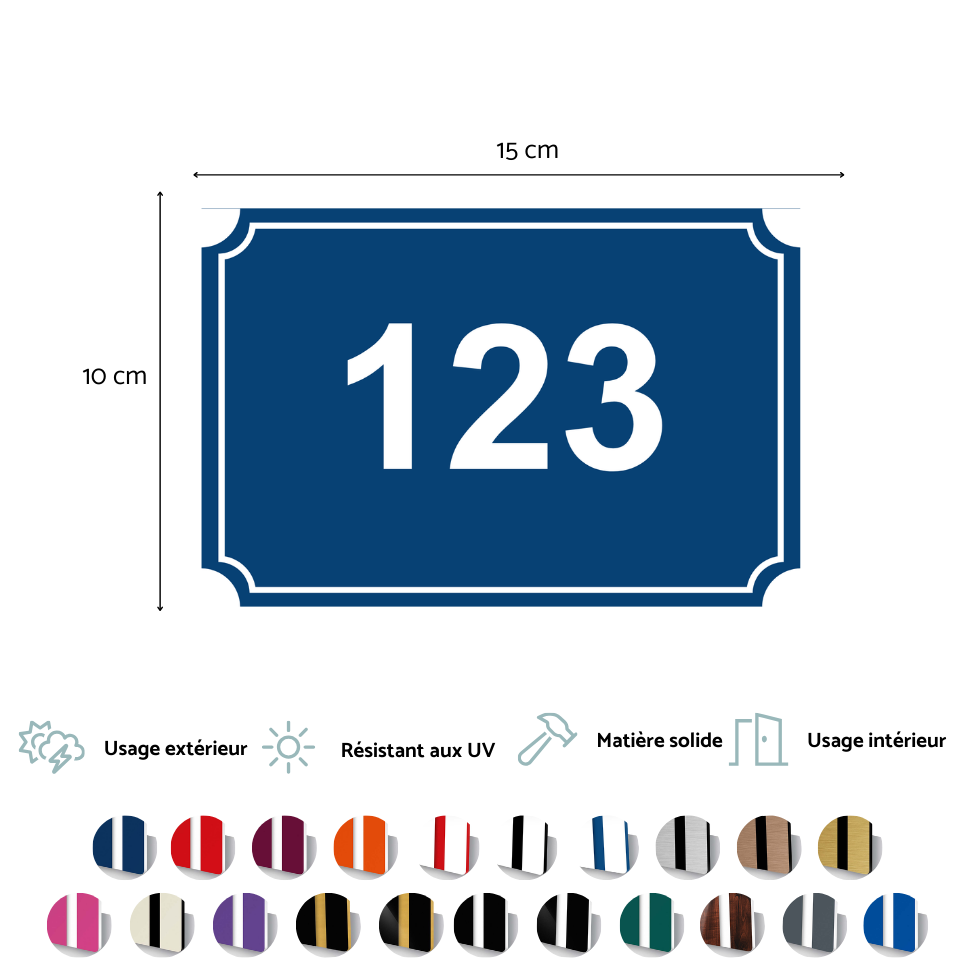 - Dimensions idéales : format 15 x 10 cm, parfait pour une visibilité optimale de votre numéro de rue.