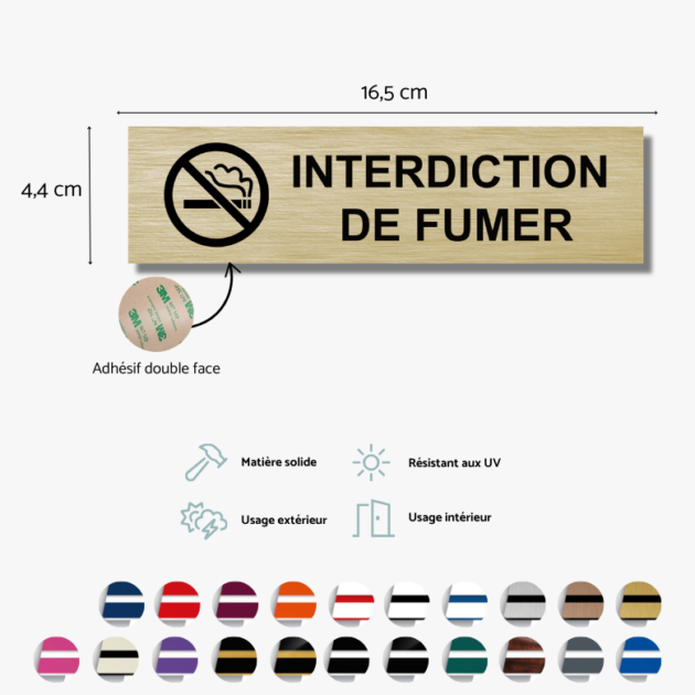 Plaque Interdiction de Fumer en PVC – 16,5×4,4 cm – Plusieurs Coloris – Adhésif 3M – Jymm :