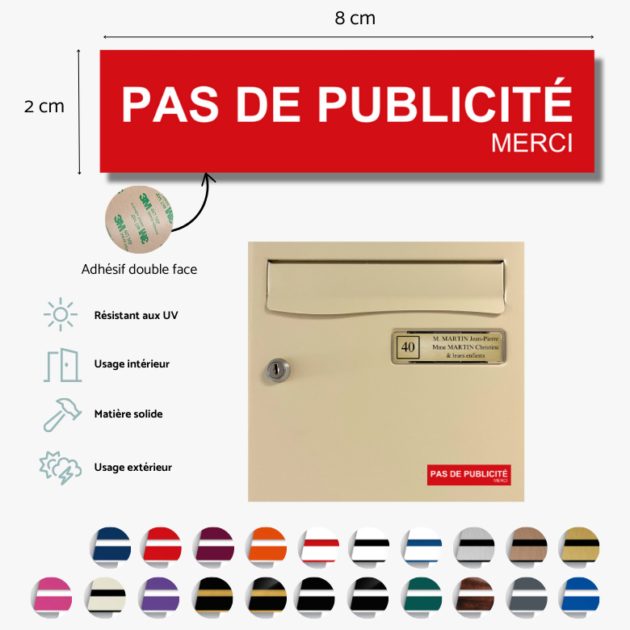 - Adaptée à tous les environnements : que ce soit pour un usage résidentiel ou professionnel, cette plaque est adaptée à tous les types de boîtes aux lettres.