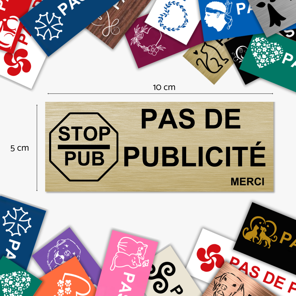 Cette plaque “Pas de Publicité Merci” est idéale pour signaler clairement votre souhait de ne pas recevoir de publicités dans votre boîte aux lettres. Grâce à son grand format de 10 x 5 cm, elle offre une visibilité optimale pour éviter les prospectus indésirables tout en restant élégante et discrète.
