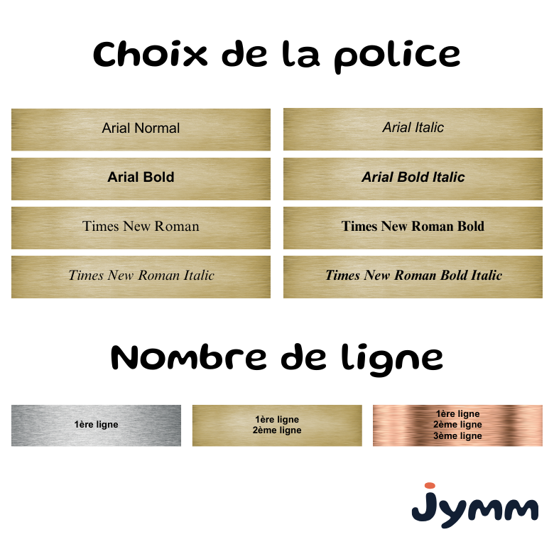 - Personnalisation facile : personnalisez votre plaque avec votre nom ou toute autre information sur 1, 2 ou 3 lignes. Choisissez parmi plusieurs couleurs, y compris dorés, argentés et des couleurs vives pour un look unique.