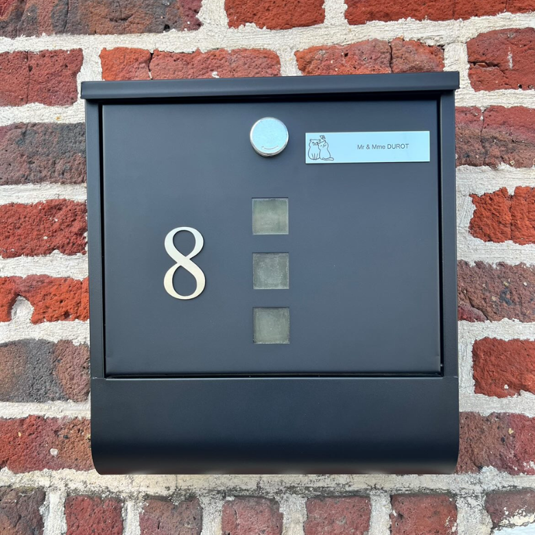 - Dimensions idéales : la plaque mesure 10 x 2,5 cm, une taille parfaite pour une visibilité optimale sans encombrer votre boîte aux lettres.
