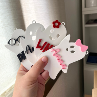 Ajoutez une touche de fantaisie à votre décoration avec nos fantômes blancs personnalisés ! Ce produit est disponible en quatre modèles uniques : fantôme avec lunettes, fantôme avec nœud, fantôme avec fleur et fantôme classique. Chaque modèle est parfait pour célébrer Halloween ou ajouter une décoration originale à n’importe quel espace.