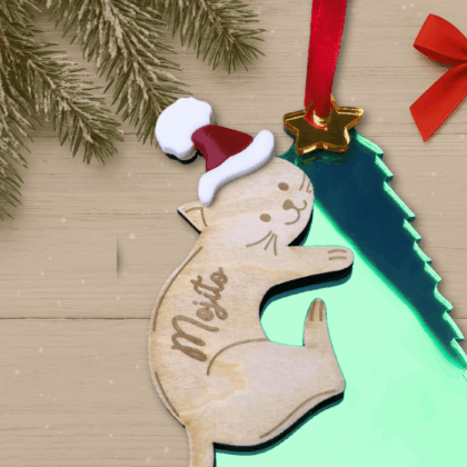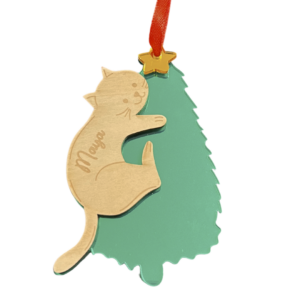 Fabriquée en acrylique de 3 mm, chaque suspension ajoute une touche de brillance à votre décoration de fête. La gravure précise du prénom personnalisé en fait un souvenir unique et précieux, idéal pour les fêtes de fin d’année. D’une dimension de 8×12 cm, elle s’intègre harmonieusement à tout type de sapin. Par ailleurs, cette suspension personnalisée fait aussi un excellent cadeau. Elle charmera tous les amoureux des chats et apportera une touche d’originalité à vos décorations.